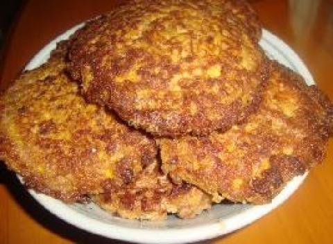 2.平底锅加入花生油,把蛋煎成一个个圆型状,煎成金黄色即可.