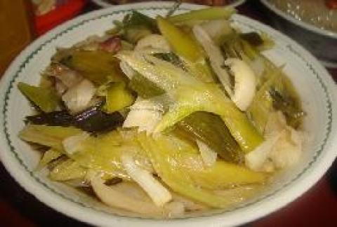 3.煮到大蒜烂时,加上芹菜翻炒均匀后加盐和鸡精调味即可。