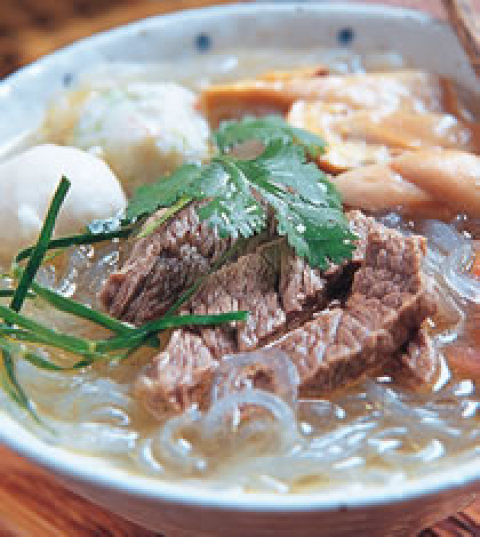 4.冬粉煮好放入碗内,淋上做法3的所有汤料,食用前加入香菜,再滴数滴柠檬汁即可。