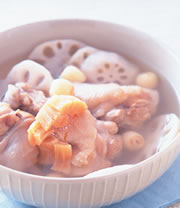 第一种:美食美味的干贝莲藕煲棒腿做法