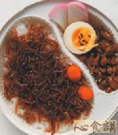 吻仔鱼150g,山椒粉少许,甘露煮汁:25㏄,水50㏄,柴鱼素1/4小匙,砂糖20g,酒25㏄,味醂25㏄