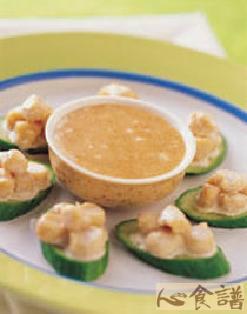 干贝1罐,小黄瓜2条,辣椰汁沙拉酱1又1/2大匙