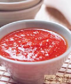 3.将作法1的辣椒泥及白醋、细砂糖、香菇精放入作法2的锅中,以小火炒约5分钟,呈现浓稠状即完成。
