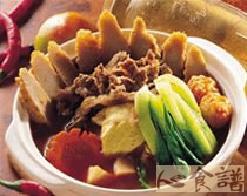 大白菜1个,黑轮1/2斤,牛杂1/2斤,青江菜1/2斤,鱼丸1/2斤,豆腐2块,牛肉片1盒,高汤适量,汤底材料:2罐,蕃茄酱1杯,新鲜红蕃茄3个,调味料:2大匙,酱油1大匙,辣椒粉少许,芥末酱1小匙,香油少许,糖1小匙