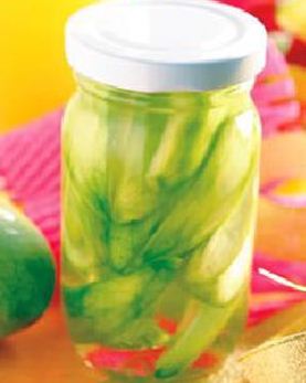2.将作法1静置约12小时后,倒掉容器内的苦水,有彻底完成作法1的步骤,此时的青芒果将呈现自然鲜艳的翠绿色。