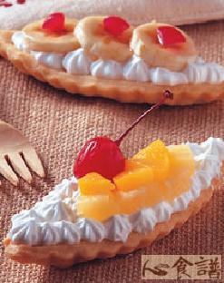 低筋面粉170公克,植物性奶油110公克,细砂糖60公克,盐2公克,水40cc,植物性鲜奶油200公克,各式水果适量