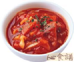 蕃茄酱100cc,洋葱碎40g,蒜末15g,高汤250cc,蕃茄碎60g,黑胡椒粉适量,糖适量,盐适量
