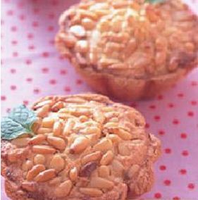 2.将内馅填装于生塔皮内约八分满,上面撒上松子。