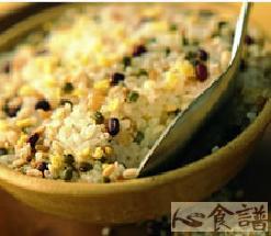 八宝米2杯,水2杯,盐1小匙,糖1小匙