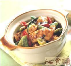 (3)以上材料炒至熟透,再加入宫保酱、蚝油拌炒均匀,最后以太白粉水勾薄芡即可。
