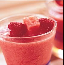2.将覆盆子洗净后,连同作法1的红西瓜块、果糖、冰块,一起放入果汁机中搅打约20秒即可倒入杯中。