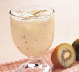2.将奇异果及脱脂优酪乳一起放入果汁机中,拌打约20秒即可。
