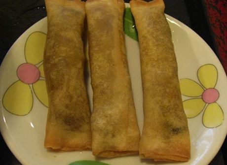 2 包馅料时皮子不要卷得太紧,以防油炸时受热表皮破裂。