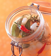 3.取一瓶罐,将作法1及作法2的材料放入罐内,加入调味料浸泡,待3∼4天入味即可食用。