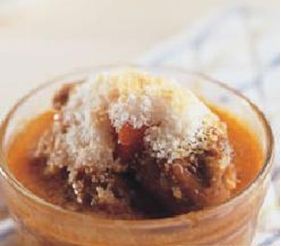 9.将调味料a调匀后倒入平底锅中,再加入洋葱块、蒜末、沙拉油及水400㏄拌匀,以强火加热15分钟,再加入作法4的材料及青豆仁、调味料b拌匀,撒上调味料c,以弱火加热30分钟即可。