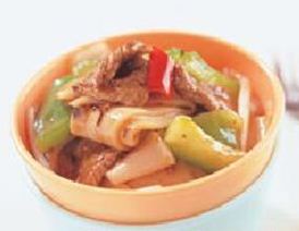 主料:牛里脊肉250克,青椒100克,柿子椒100克,