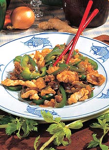 主料:(四人份)鸡胸肉1.4公斤,小洋葱1个(去皮切小块),红辣椒1个(去籽切小块),青分葱1个(去籽切小块),