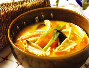 主料:红萝卜200克,鸡脆骨100克,冬菇20克,姜,葱各10克。花生油20克,盐15克,味精10克,鸡精粉,清汤150克。