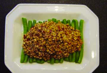 2 刀豆汆水后排列长书盆中,码齐。