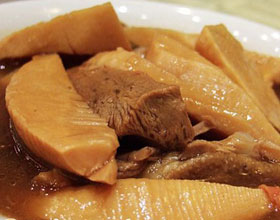 第一种:美食美味的竹笋咸腿老鸭砂锅做法