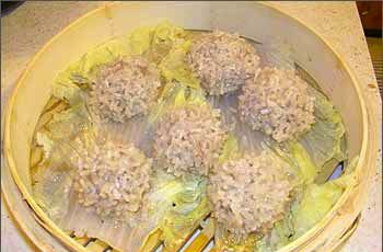 做这些的时候,可以一边烧水,等水开了,放上去蒸30分钟,这时就飘出香味了,还有白菜的淡淡的香味,美味的珍珠丸子就可以出锅了。