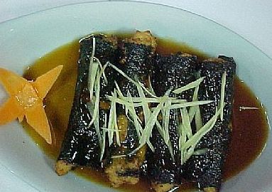 脆皮黄瓜卷、鲍汁扒百灵菇、冬菇煲老鸭、葱扒鸭