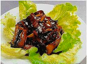 白鳝300克,生菜150克,味精1克,精盐4克,料酒15克,糖色3克