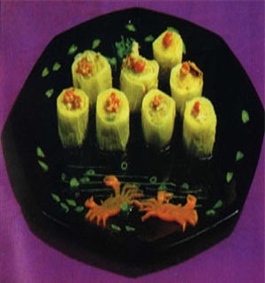这道菜是上周五去利群烤鸭店里学来的。这个芥末白菜卷还是比较有特色的。