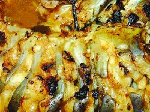 1、白鳝宰杀洗涤干净,剞上花刀,放入调料腌渍,摆入盘中。