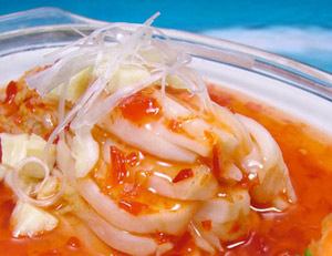 2、另将泰国鸡酱、碎蒜、小米辣调制成汁使用。