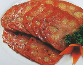 特点:此菜为回族清真风味。形似新杏脯,色红汁亮,肉质柔软,食之香甜如蜜,回味略酸。