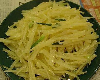 主料:1,土豆500克;2,豆油35克,醋35克,精盐7克,花椒10粒,葱,姜丝,蒜片共15克。