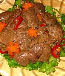 茄汁里脊、糖醋辣椒、百合火腿、糖醋猪腰、五香牛腩