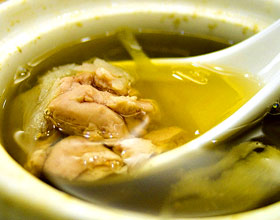 脑花洁白,上汤清澈透明,口感细腻清香。