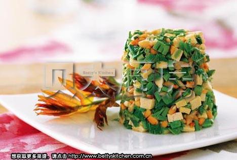 主料:香椿芽100g,花生仁50g,香干50g,海米25g