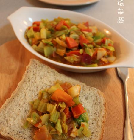 如果家里有法棍之类的面包,最好不过了,可以切几片放烤箱里烤出香气,放上些红烩菜,格外好吃~