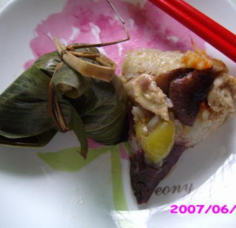 粽子的包法:这个我没有办法详细教怎么做,可以是长方形,正方形,像我们的就是菱形的。