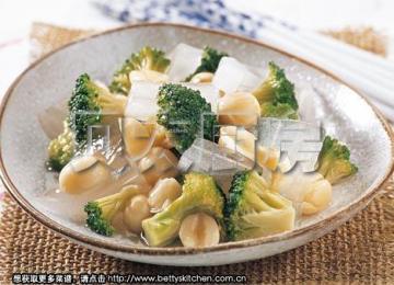 莲子100g,芦荟100g,西兰花1/2棵,盐1茶匙5g,白胡椒粉1/3茶匙2g,水淀粉2汤匙30ml,清水600ml