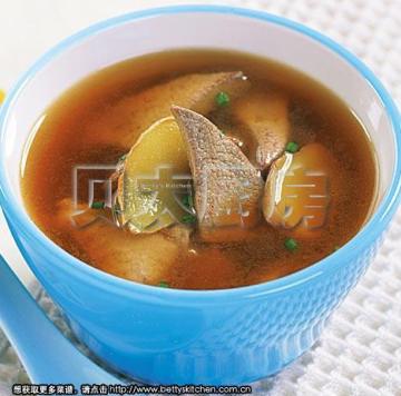 猪肝150g,带皮老姜4片,黑麻油30ml,月乃汤200ml
