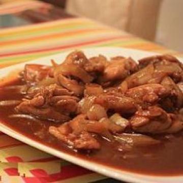 主材:,鸡柳450克,切块,中个洋葱1个,去皮切丝,蒜蓉2茶匙,汁料:份量只供参考,茄汁4汤匙,喼汁2汤匙,盐1/3茶匙,糖2糖匙,水4汤匙,生抽2茶匙,hp汁2茶匙,腌料:,酱油、生粉、糖、盐、水和油适量