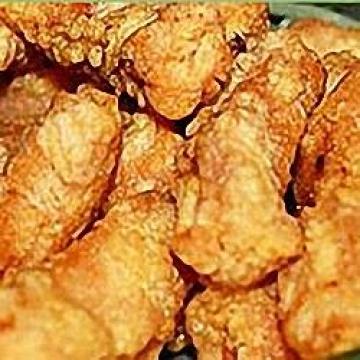 4.用温油炸至外皮凝固捞出,至油温上升至7成时,复炸至金黄色