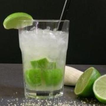 青柠半个,对切成四块,白糖4克,巴西甘蔗酒(cachaca)70毫升,冰块235毫升