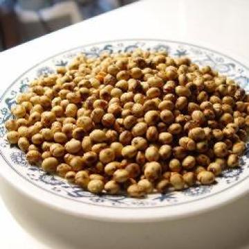 2.把黄豆趁热倒进一个密闭的容器中,加椒盐摇匀即成。