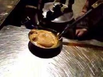 4.待定型后,再放回炉上开火略微烘烤杓底,然后以筷子略微拨动使凸糖脱杓即可完成原味凸糖
