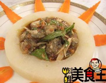 第二种:美食美味的材料:,冬瓜环1片,九层塔半两,红葱头半两,红萝卜半根,姜丝1两,生蚵10两,虾米1大匙,树子1大匙,地瓜粉半杯做法