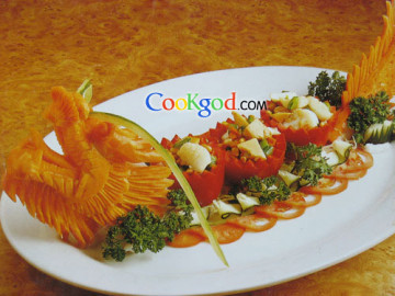 “食味”和“颜色”均为评定莱肴的尺度,颜色要有吸引力,再配以诱人的食物香气,刺激食欲,加速胃酸分泌,便可令人产生大吃一顿的冲动。能否达到如斯效果,是考验出厨师的真功夫。分量:6~8位用