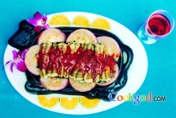 主料:推浪鱼500克,洋葱1个,铁板1个。调料:鲍汁50克,盐、味精、糖各5克,料酒10克,淀粉10克。