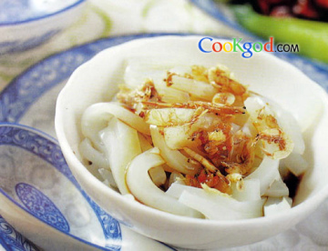 绿豆淀粉100克,水600克调味料虾皮3克,辣酱油1大匙,醋1小匙,蒜汁1小匙(约5克),老鸭汤1大匙,味精5克,盐适量,香油1小匙