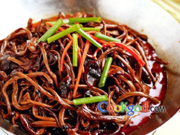 **煸茶树菇时,不要把所有的水分都煸干,留一点点茶树菇炒出来的汤汁,最后淋水淀粉时才不会使茶树菇上的芡汁过于的浓厚,影响口感。
