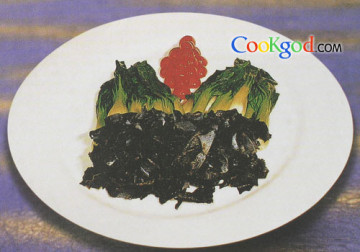 这是一款工艺菜品,重在选菜和造型上。青菜、石耳营养丰富,樱桃艳丽可人,是节日和寿诞喜庆中的常选菜肴。主料青菜心 石耳辅料红樱桃调料高汤 猪油 精盐 味精 色拉油